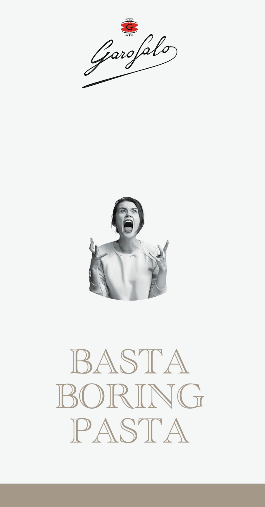 L’une des propositions (Basta Boring Pasta) mêlait l’utilisation de photos noir et blanc très “dolce vita” en opposition avec la couleur des pâtes Garofalo. Content création oblige, nous avons développé un système d’animation simple basé sur du stop motion pour renforcer le caractère brutal et révolutionnaire…